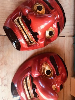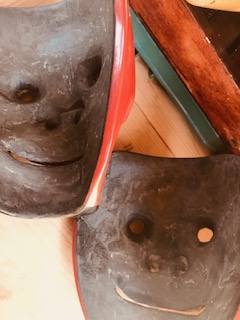 先日、お預かりしています「王の舞」に登場する天狗面と庭鳥王冠の修復を進めています。